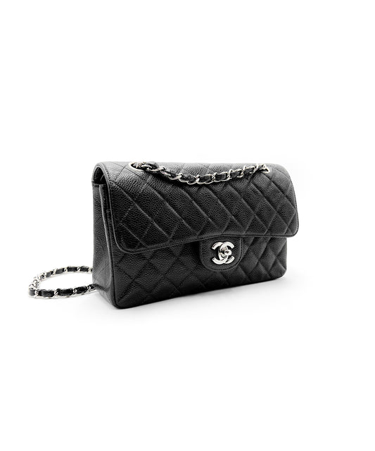 Chanel Small Classic Flap Quilted Black Caviar Silver Hardware