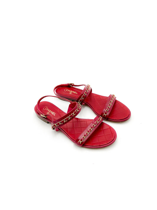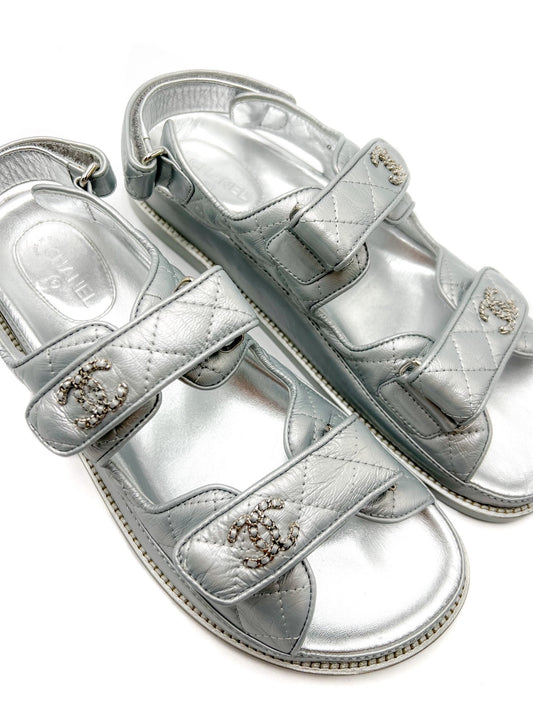 Chanel Silver Interlocking CC Logo Leather Dad Sandals