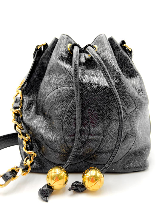 Chanel Vintage Grained Calfskin Drawstring Bucket Bag