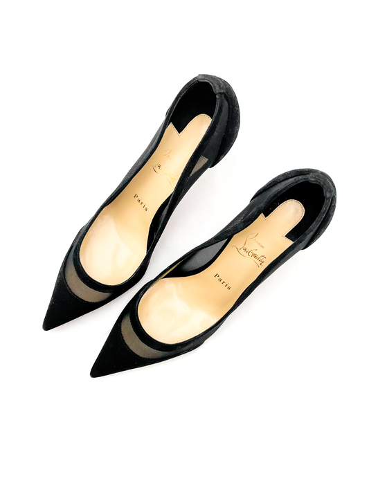 Christian Louboutin Galativi 85 mesh and suede pumps