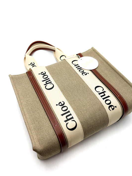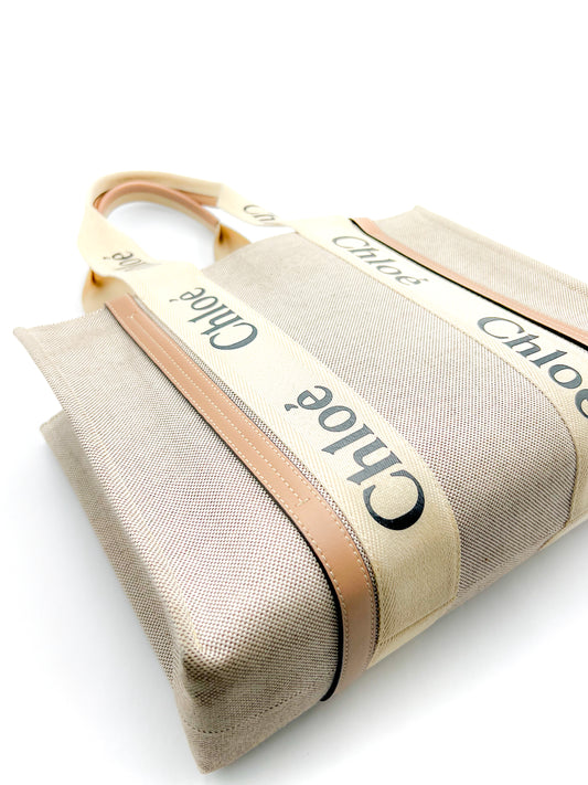 Chloé Medium Woody Tote Bag Biscotti Beige