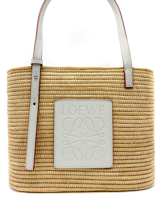 LOEWE + Paula's Ibiza small leather-trimmed woven raffia tote