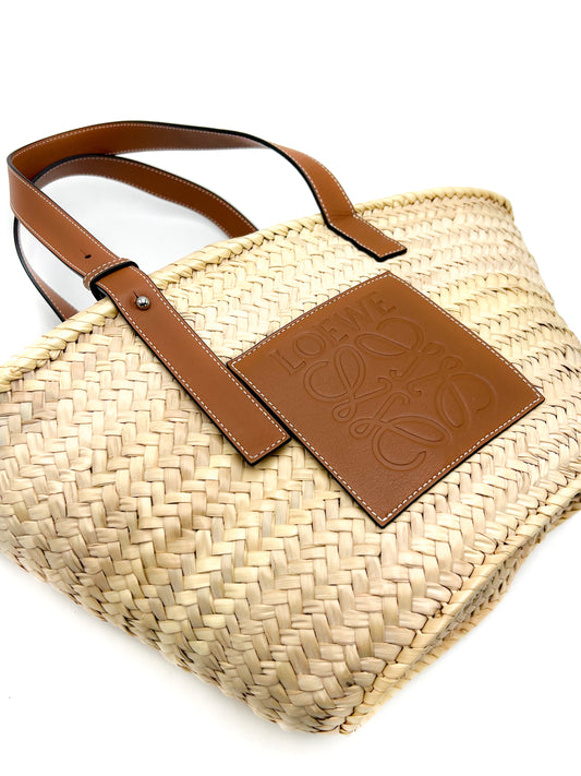 Loewe Small Basket Bag in Raffia and Calfskin