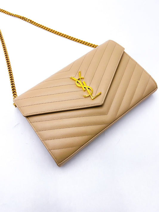 Saint Laurent Cassandre Wallet on Chain Beige