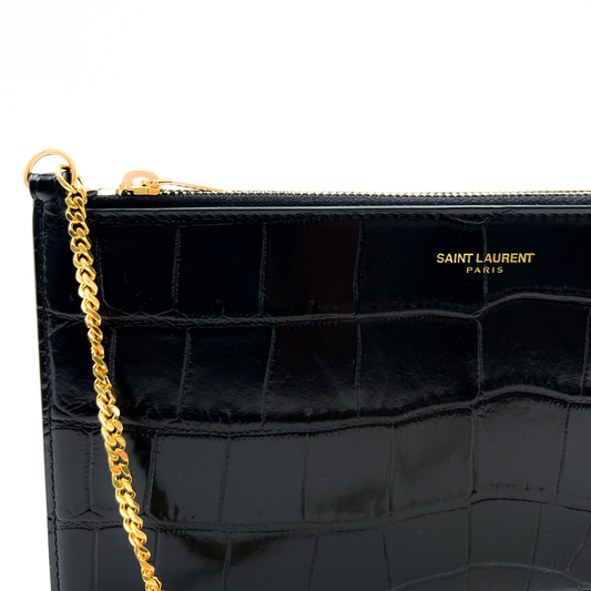 Saint Laurent Black Croc Embossed Small Double Detachable Pouch Crossbody