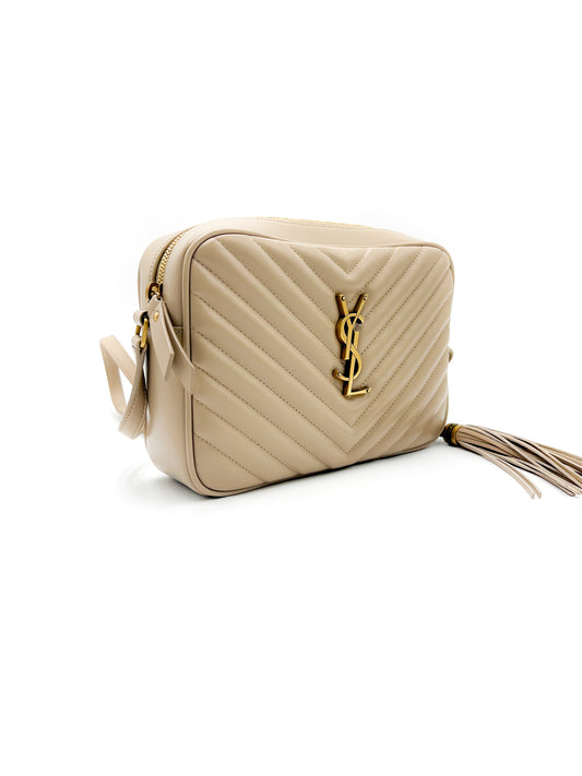 Saint Laurent YSL Lou Camera Bag in Quilted Leather Beige with Gold Hardware