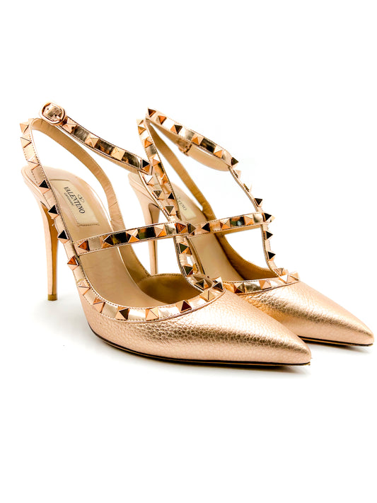 Valentino Rockstud Metallic Ankle Strap Pump 100 mm